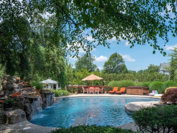a park like setting featuring a koi pond, in-ground pool with waterfall, pool house with living quarters and bathroom, extensive hardscaping and designer landscaping. Offering romance and sophistication the over 5,500 square feet of living space is a Trifecta of perfection – an architectural masterpiece, located in Bucks County, in highly acclaimed Council Rock School District. The grand scale of the two story foyer is complimented by the formal living and dining rooms leading to the conservatory with extensive mill work and walls of windows. Stunning views flow through the back of the home overlooking the pool.
