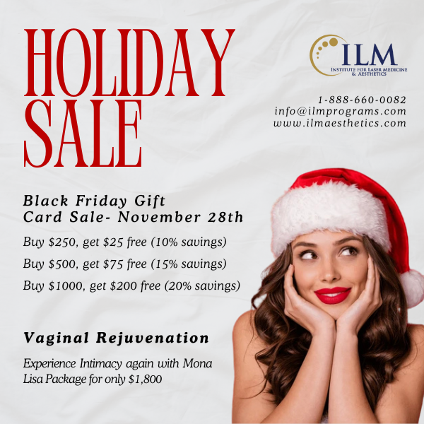 Backed by over 25 years of experience in the field of medical aesthetics, ILM Aesthetics has become a cornerstone for clients and professionals seeking advanced skincare solutions and education. Shop their Black Friday Gift Card Sale on November 28th. Buy $250 and get $25 free (10% savings), buy $500 and get $75 free (15% savings) and buy $1000, get $200 free (20% savings).