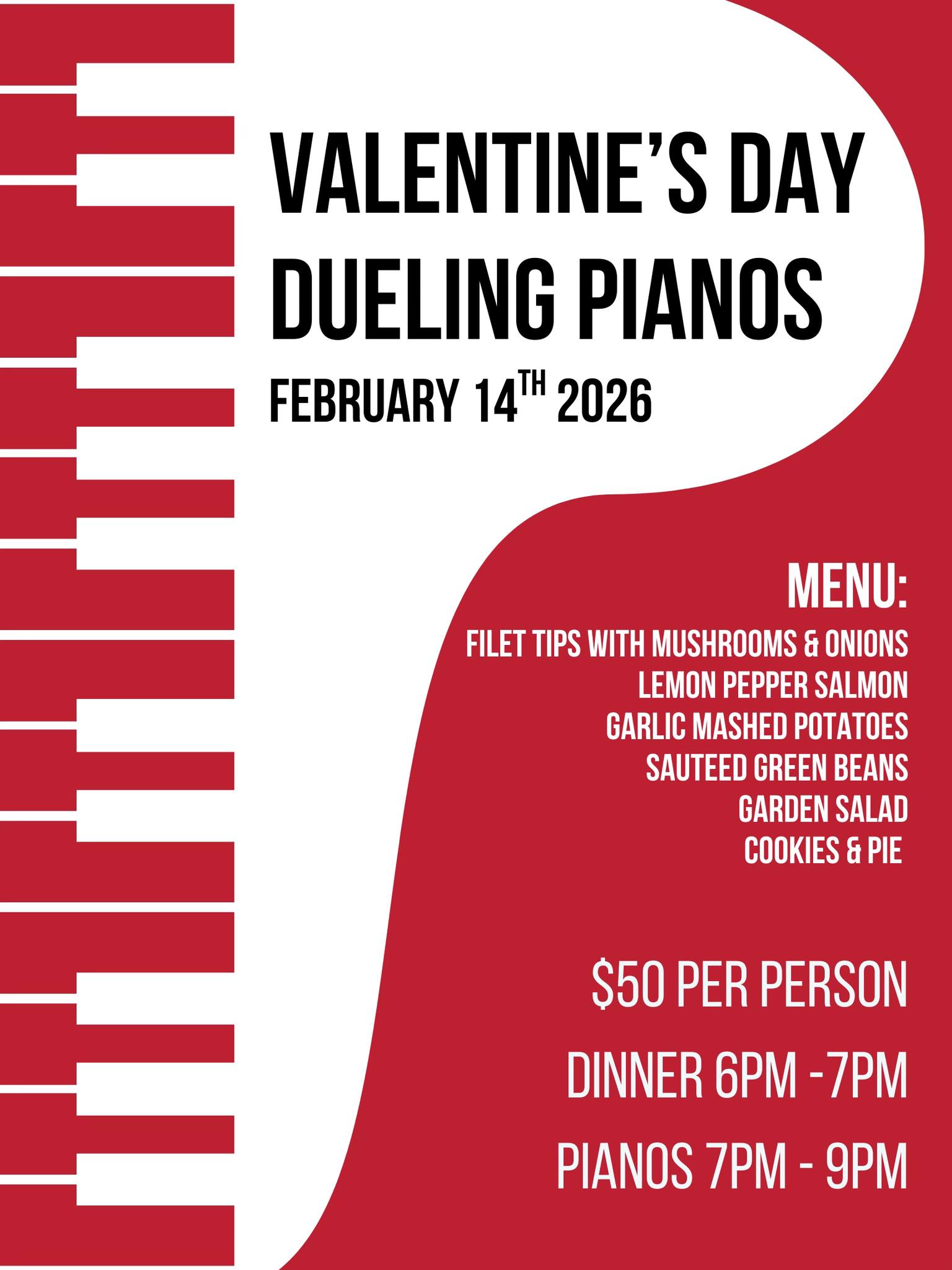 Valentine’s Day Dueling Pianos: February 14, 4-7 pm – Enjoy a fun date night at the winery as the talented “Piano Dudes” go head-to-head with sing along songs. Buffet dinner and a variety of desserts will be included with your ticket! Reserve your seats now for a Valentine’s experience that hits all the right notes. Tickets include a buffet dinner.