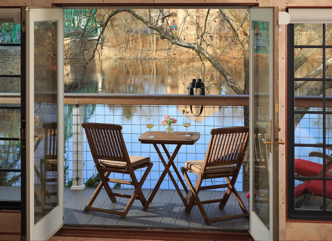 Bridgeton House on the Delaware is a riverfront luxury bed and breakfast inn. It offers beautiful lodging just 20 minutes north of New Hope and is located ninety minutes from NYC and sixty minutes from Philadelphia. Situated on the banks of the Delaware, Bridgeton House is decorated in a sophisticated and artistic style with feather beds, luxury linens, fireplaces, whirlpool tubs, private balconies, French doors and river views.