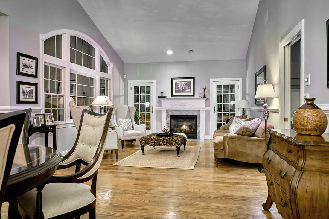 “The main floor is where the magic really begins for the people who want that one floor living space,” says Hilgrube. The open-concept main level features over 3,000 square feet of space and includes the master bedroom, the kitchen, a formal dining area, a chic and comfortable living room, an elegant sitting room, and an office.  The space functions beautifully for everything from a cozy night in, to a large gathering of friends or family.