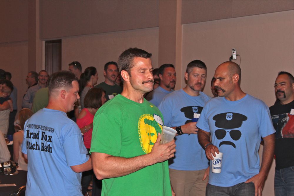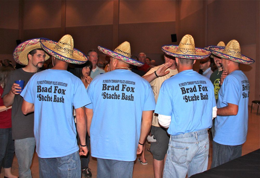 What started as a clean shave soon progressed into one of the hairiest and most heart warming events of the year! The Brad Fox Stache’ Bash was created to honor the legacy of fallen Officer Brad Fox while raising money and support for The Fox family and Children’s Fund. This event all began on April 1st when police officers, dispatchers and law enforcement personnel from Plymouth Whitemarsh and surrounding areas took part in a “shave off” at the Lucky Dog Saloon in Lafayette Hill. Over the next 40 days, Ofc. Fox’s family, friends and co-workers grew out their best staches in preparation for the Beef n’ Beer Dinner at LuLu Shriners. Here, their newly added facial hair was meticulously critiqued by a panel of judges who found it hard to keep from laughing! After beer, food and deliberation, awards were presented on stage for the best, worst and yes..even the most pathetic mustache! This hilarious hair growing journey was something that Brad’s closest friends and family said he would have appreciated. The night proved to be an overwhelming success as close to 1,000 people were in attendance for this unforgettable tribute. Check out our Photo Recap from the night and then look below for more info on how you can help support our county’s hero and his family.