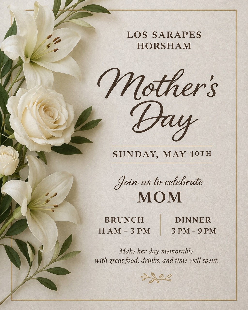 Celebrate Mom with a beautiful brunch or a special dinner filled with great food, handcrafted margaritas & time well spent with people who matter the most. Reservations recommended