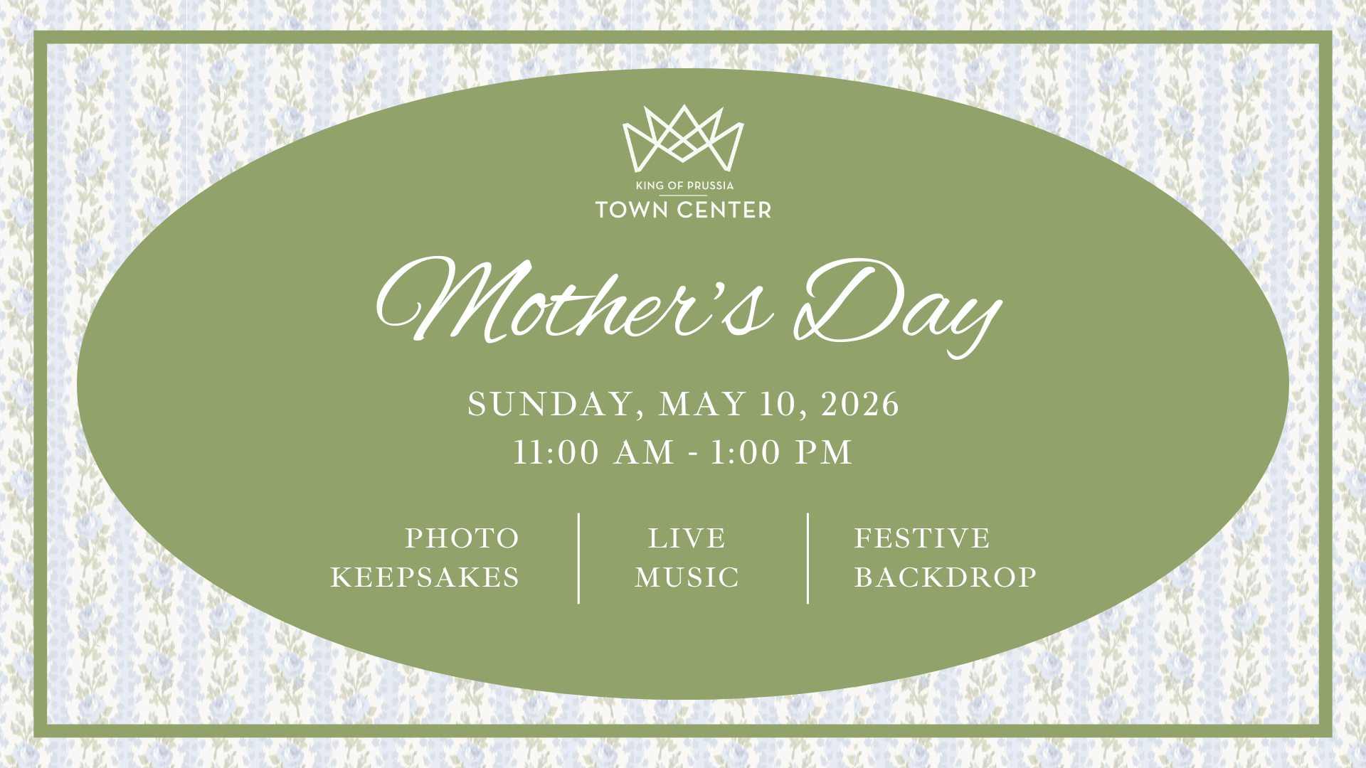 Come out to the King of Prussia Town Center for a beautifully decorated photo backdrop, custom photo giveaways to capture the moment and live music by Kendal Conrad. Bring the whole family and celebrate all the incredible moms and mother figures in your life with festive vibes and a heartfelt afternoon together.